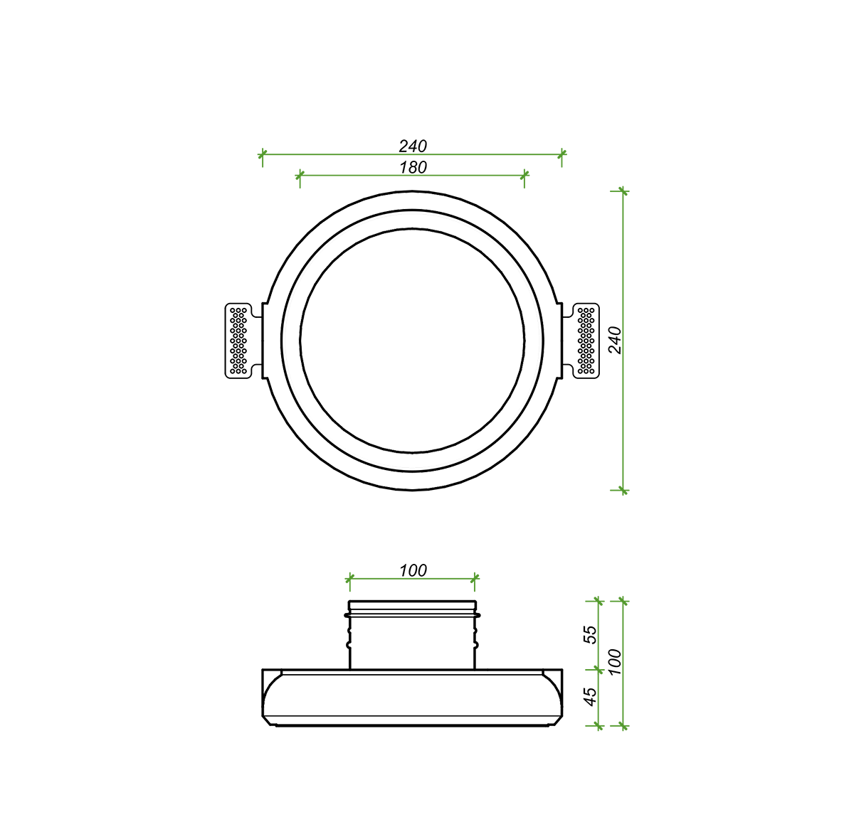 Установочный диаметр - 100 мм