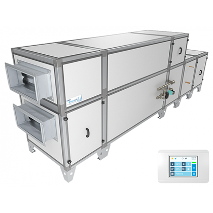- Приточно-вытяжная установка напольного типа с противоточным пластинчатым рекуператором, системой защиты от замерзания.